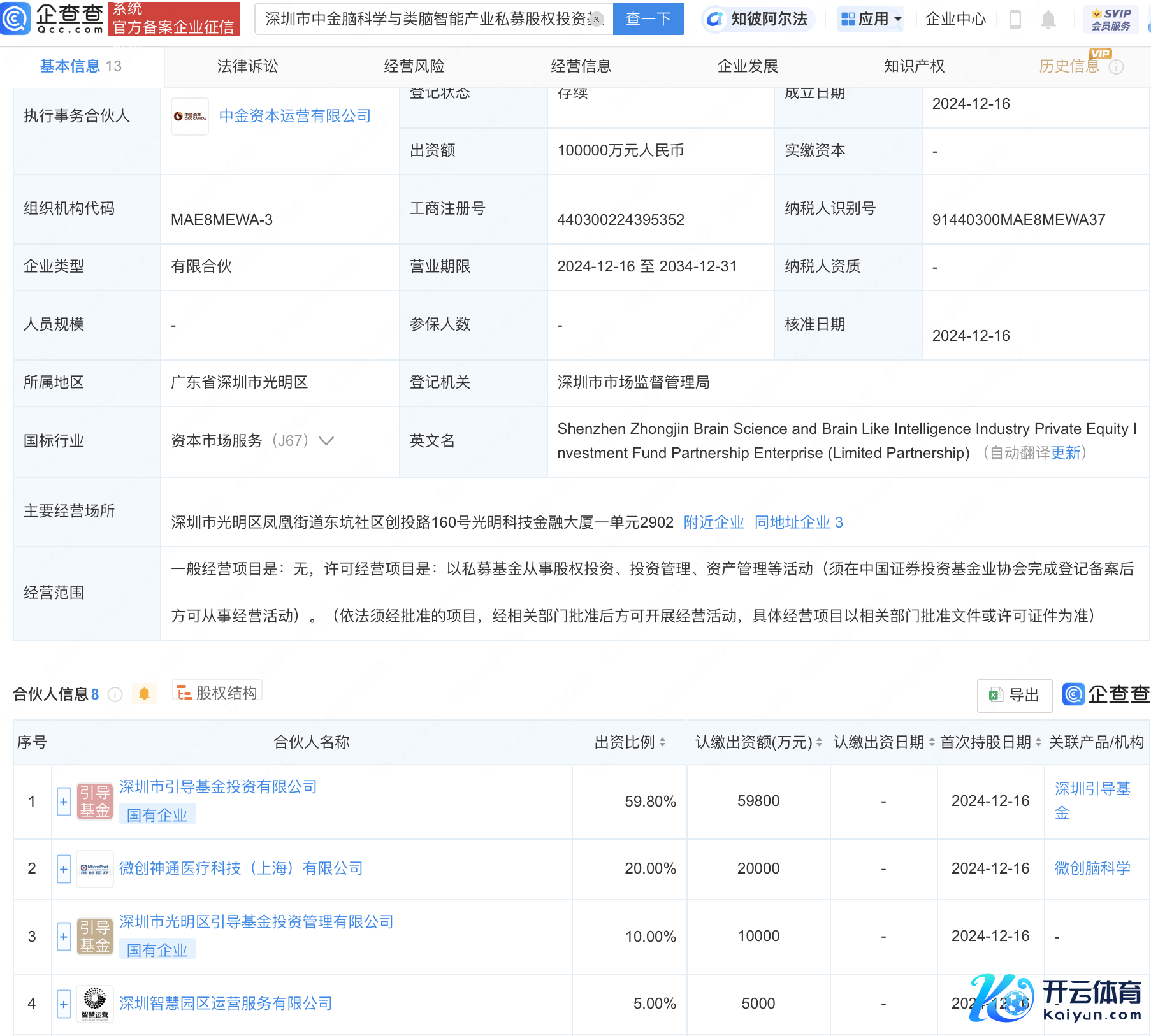 企查查APP浮现,近日,深圳市中金脑科学与类脑智能产业私募股权投资基金合股企业(有限合股)建树,出资额10亿东说念主民币,策画范围为以私募基金从事股权投资、投资惩处、钞票惩处等动作。企查查股权穿透浮现,该企业由深圳市教导基金投资有限公司、微创脑科学旗下微创神通医疗科技(上海)有限公司、中金成本运营有限公司等共同出资。