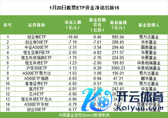 1月20日,多只宽基ETF“失血”较多,其中,创业板ETF以19.4亿元的资金净流出居前。