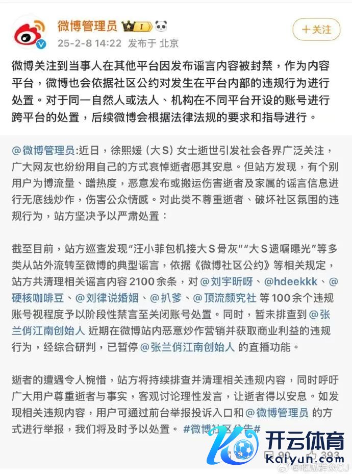 蓝鲸新闻2月8日讯(记者郝妍)在张兰与汪小菲抖音平台账号被无穷期封禁后体育游戏app平台,张兰微博直播功能也被暂停。
