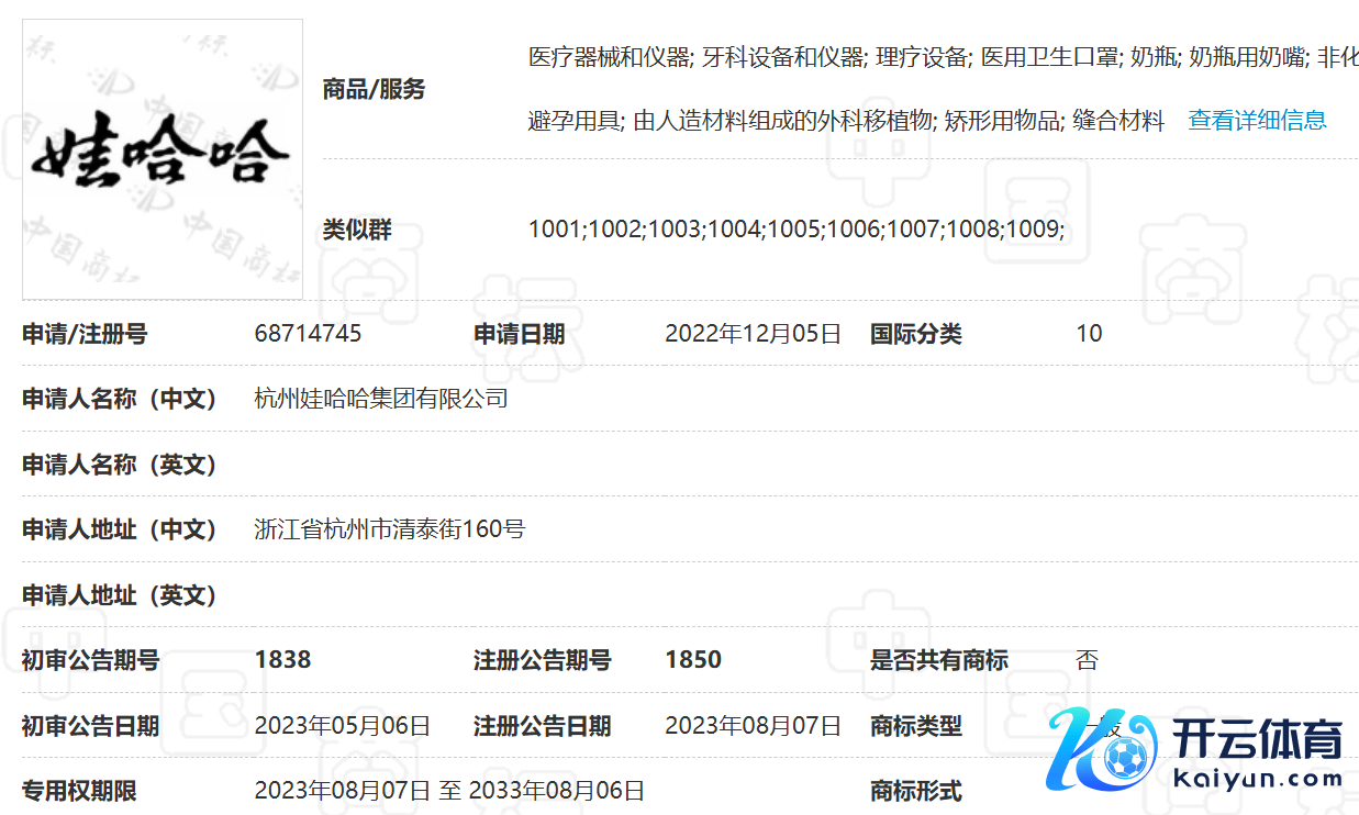 在本次商标转让中,外界温煦的一个点在于,国度常识产权局商标局官网泄露,这次被转让的第10类娃哈哈商标,审定使用商品/职业面貌为:医疗器械和仪器;牙科拓荒和仪器;理疗拓荒;医用卫生口罩;奶瓶等。而这些品类并不是娃哈哈的饮料、食物等中枢居品。
