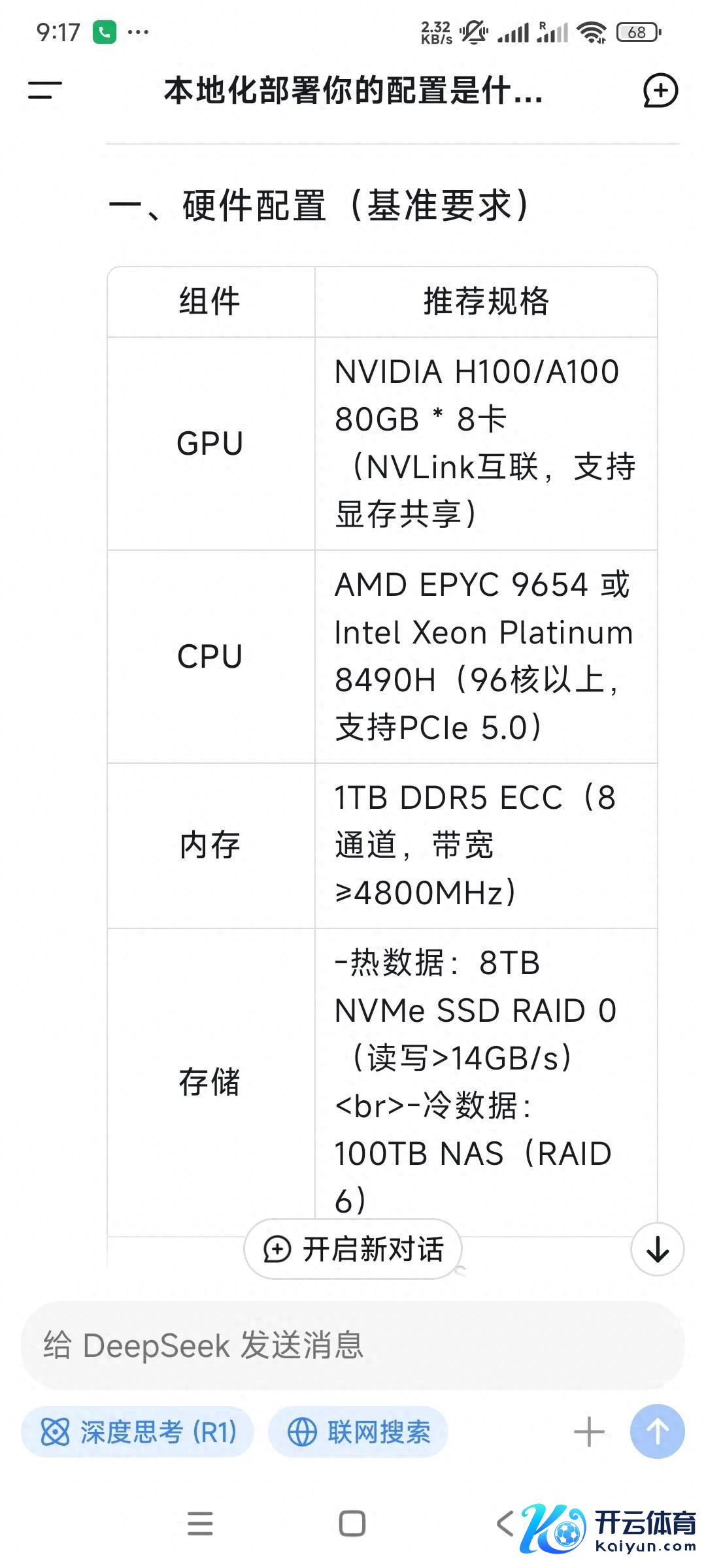 deepseek使微型化和腹地部署成为可能。确立见deepseek的回应,可见最基本确立需要8块显卡。