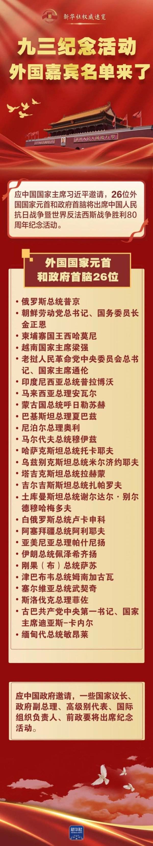 今天(28 日)上昼,中国东谈主民抗日接触暨天下反法西斯接触告捷 80 周年缅思行径新闻中心举办首场记者管待会云开体育,认真官宣出席缅思行径的 26 位番邦国度元首和政府领袖。 酬酢部部长助理洪磊在先容投入缅思行径的外方嘉宾时追思了三方面的特质,那即是"级别高、代表性强、参与面广"。直新闻瞩目到,再久了检察此份名单就会发现,其中蕴含的信息量很大。 一是中国邻近国度指点东谈主云集,如俄罗斯、朝鲜、越南、老挝、蒙古、印尼、马来西亚等国度指点东谈主皆来了,这体现了中国与邻近国度在历......【更多...】